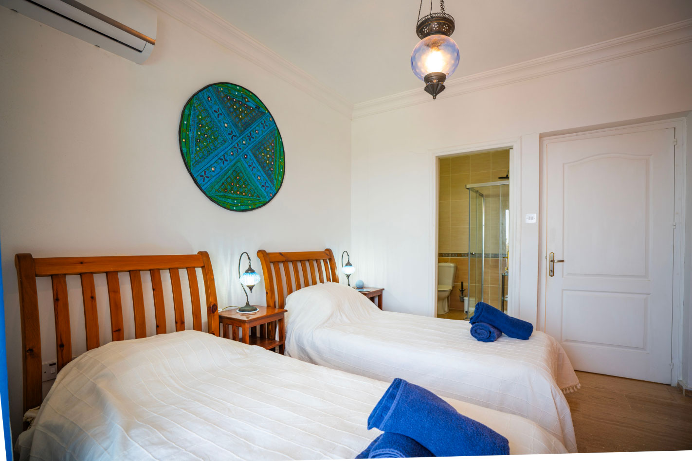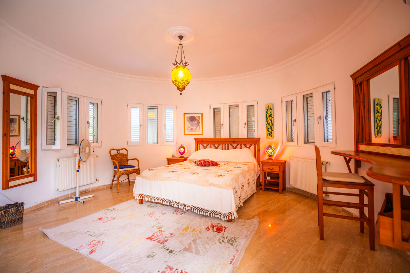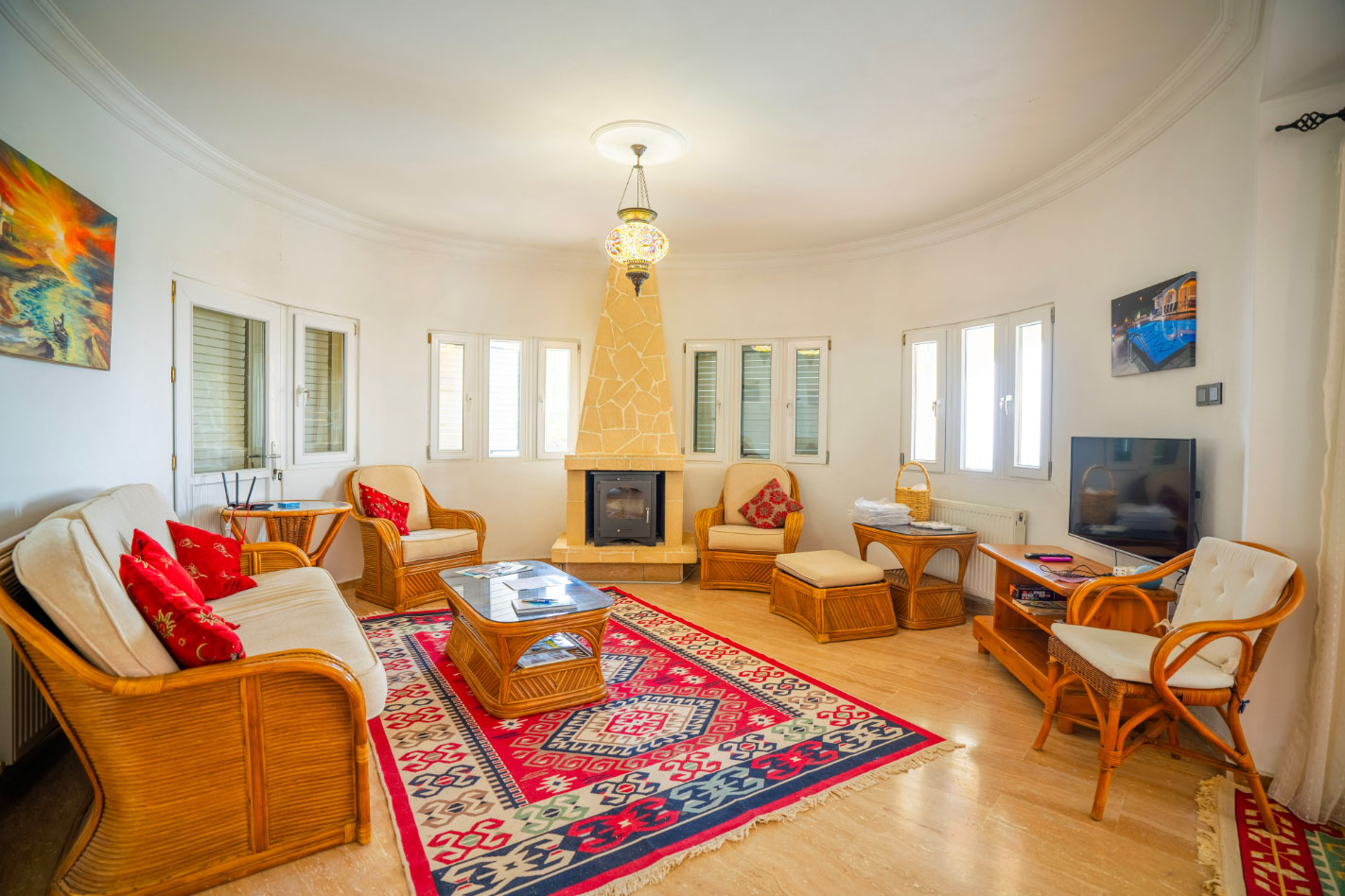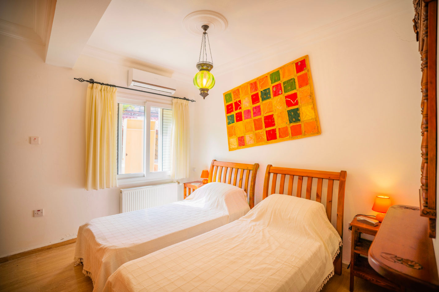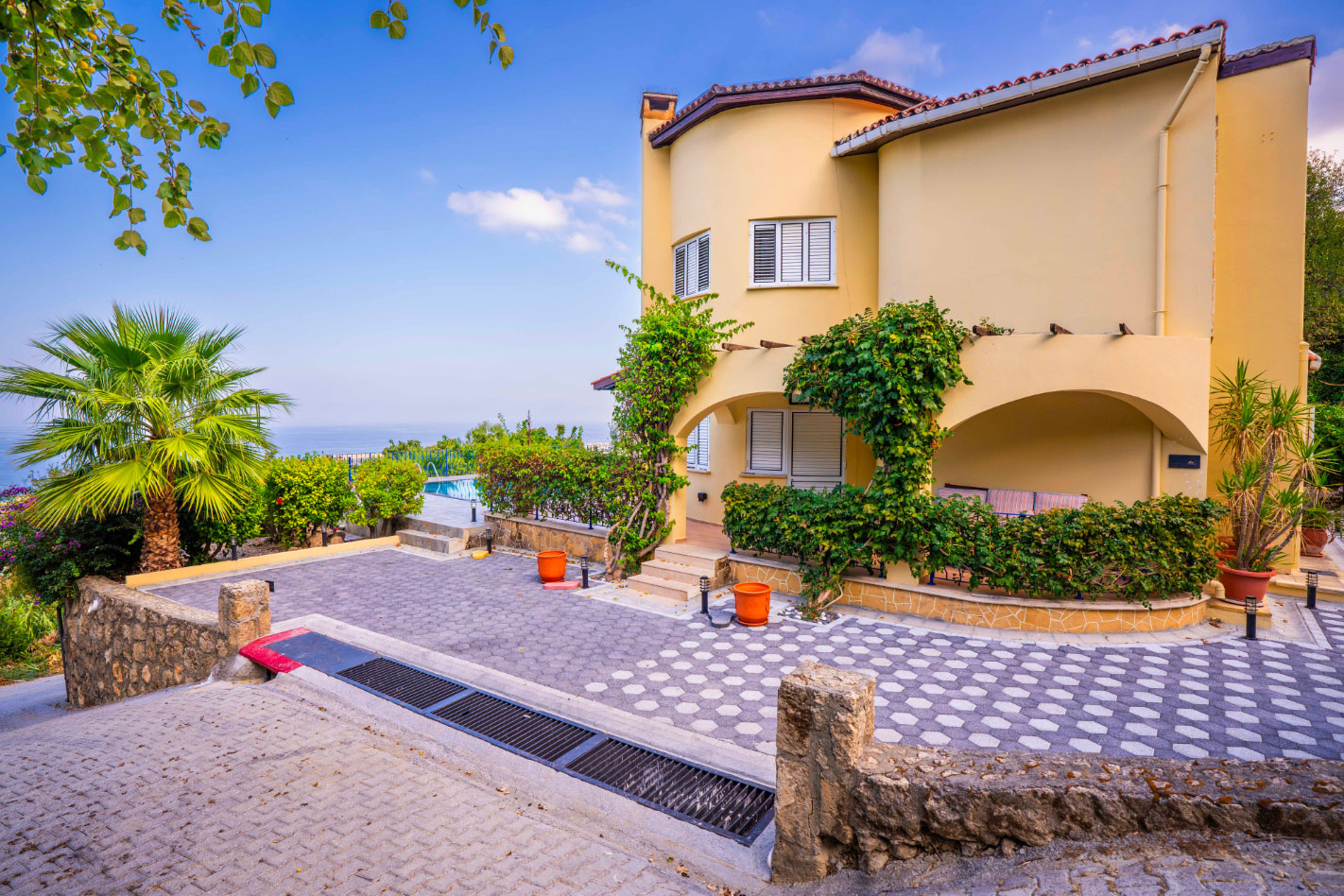 Set high in the mountains above the village of Baspinar, Lapta, Jewel Villa is a 4-bedroom lovely holiday villa offering spectacular panoramic views of the cost and surrounding village. The location is a drive up the mountain on a peaceful country lane. The villa offers 4 bathrooms with 3 en-suite, a swimming pool and a great outdoor area with covered terrace.