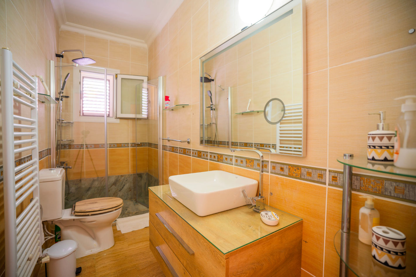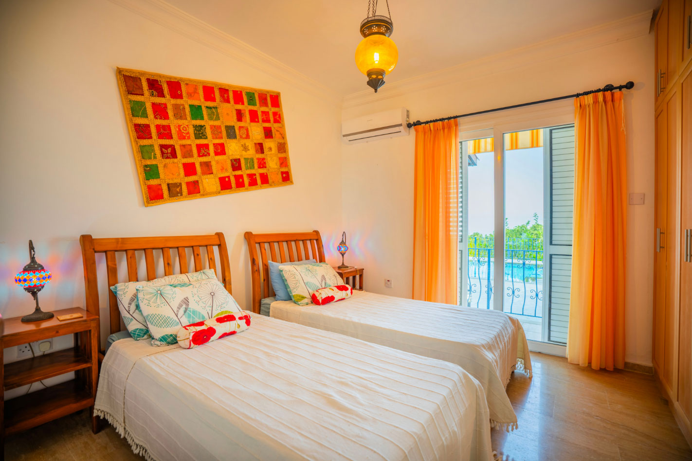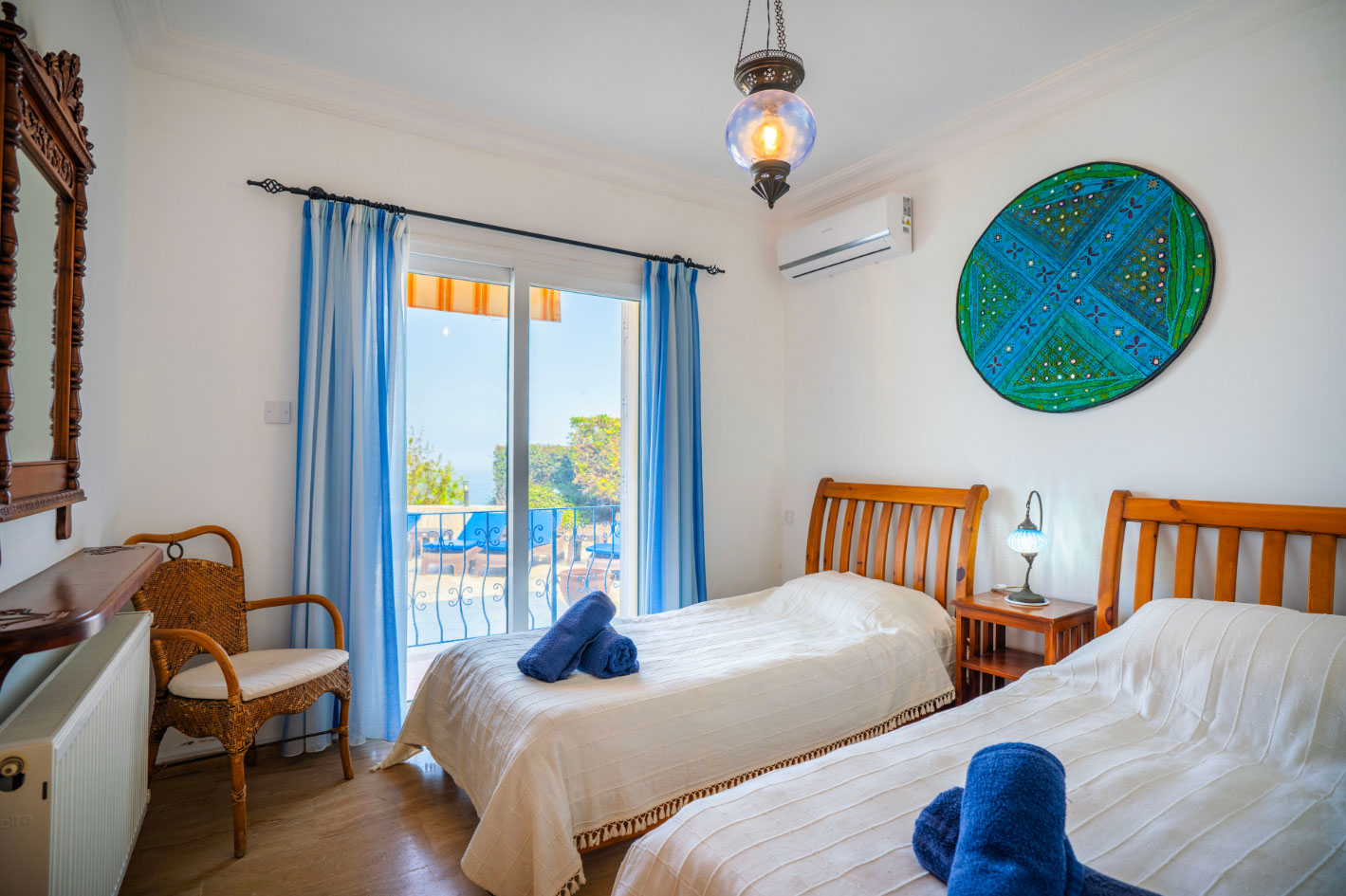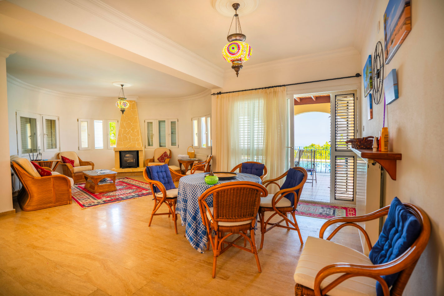 Set high in the mountains above the village of Baspinar, Lapta, Jewel Villa is a 4-bedroom lovely holiday villa offering spectacular panoramic views of the cost and surrounding village. The location is a drive up the mountain on a peaceful country lane. The villa offers 4 bathrooms with 3 en-suite, a swimming pool and a great outdoor area with covered terrace.