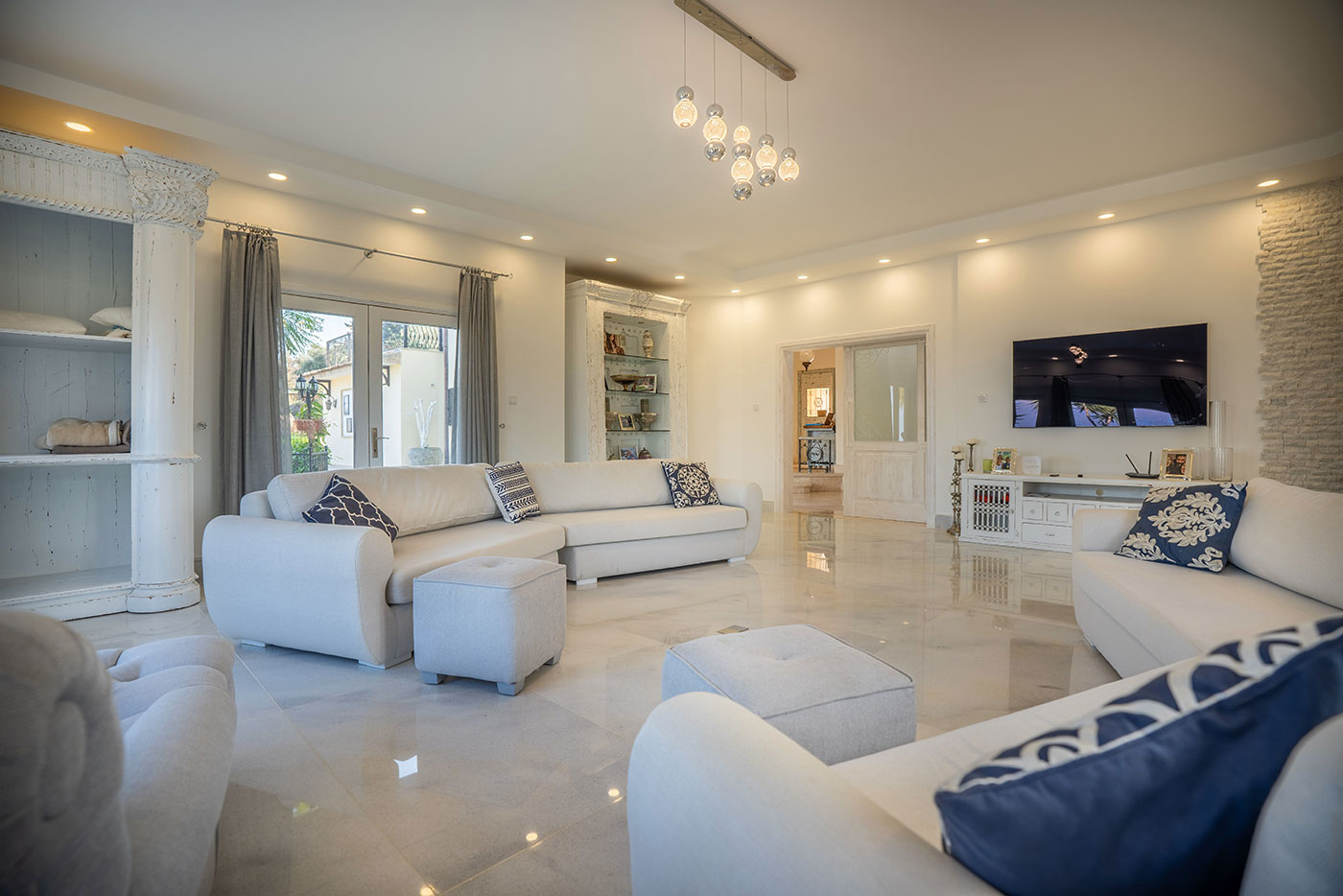 The villa boasts a generous living area designed for both relaxation and socialising, along with multiple bedrooms ideal for unwinding in total comfort.