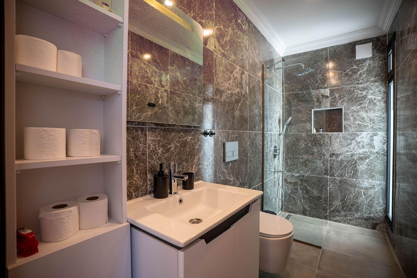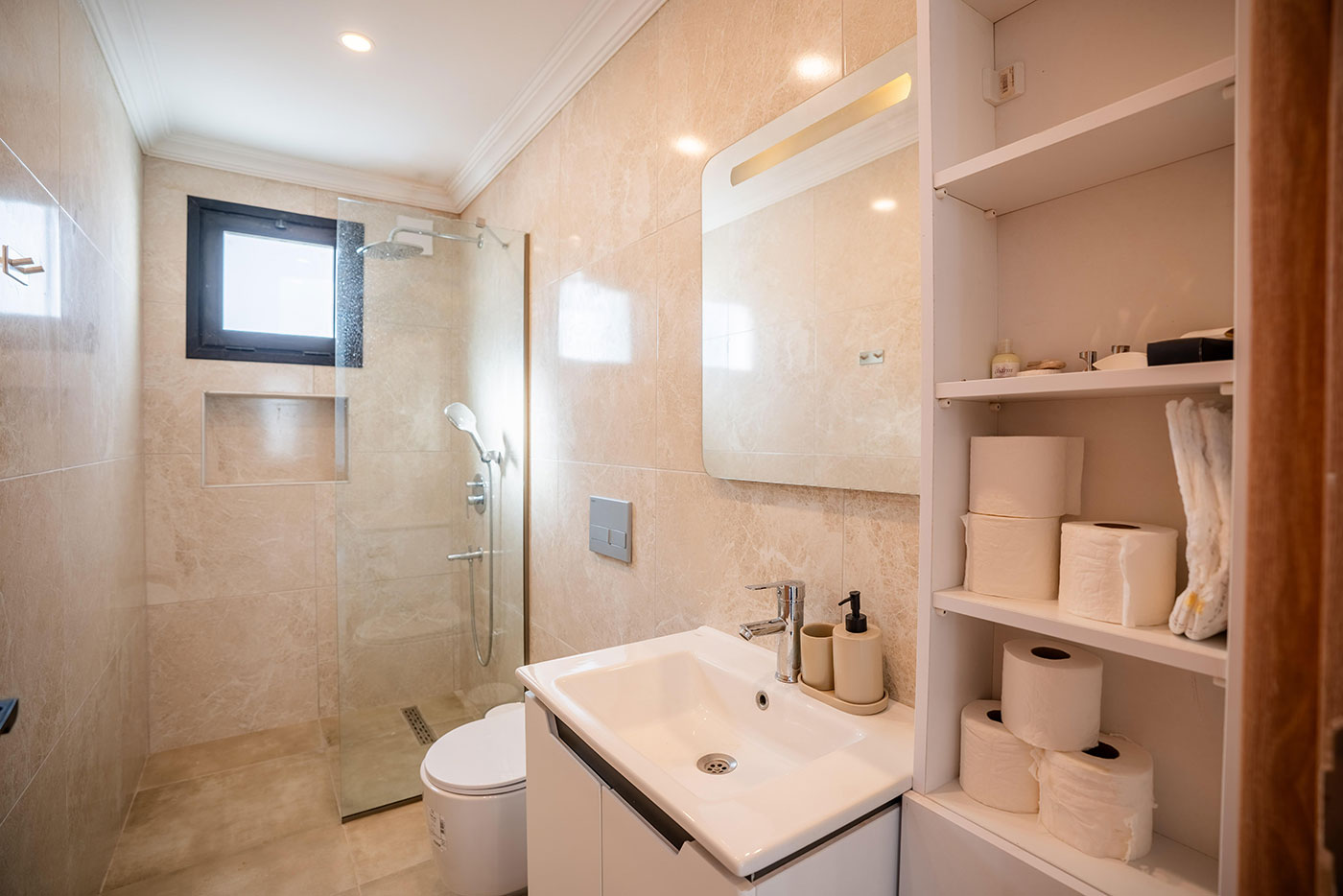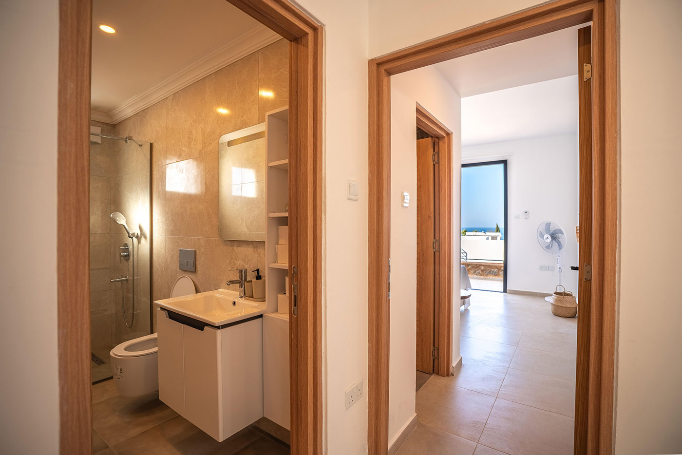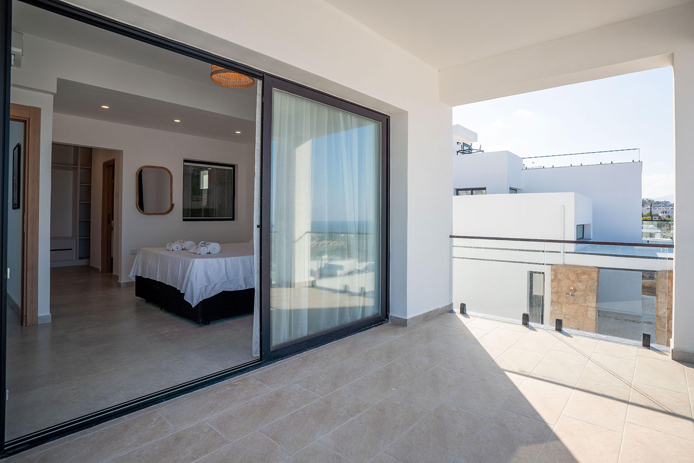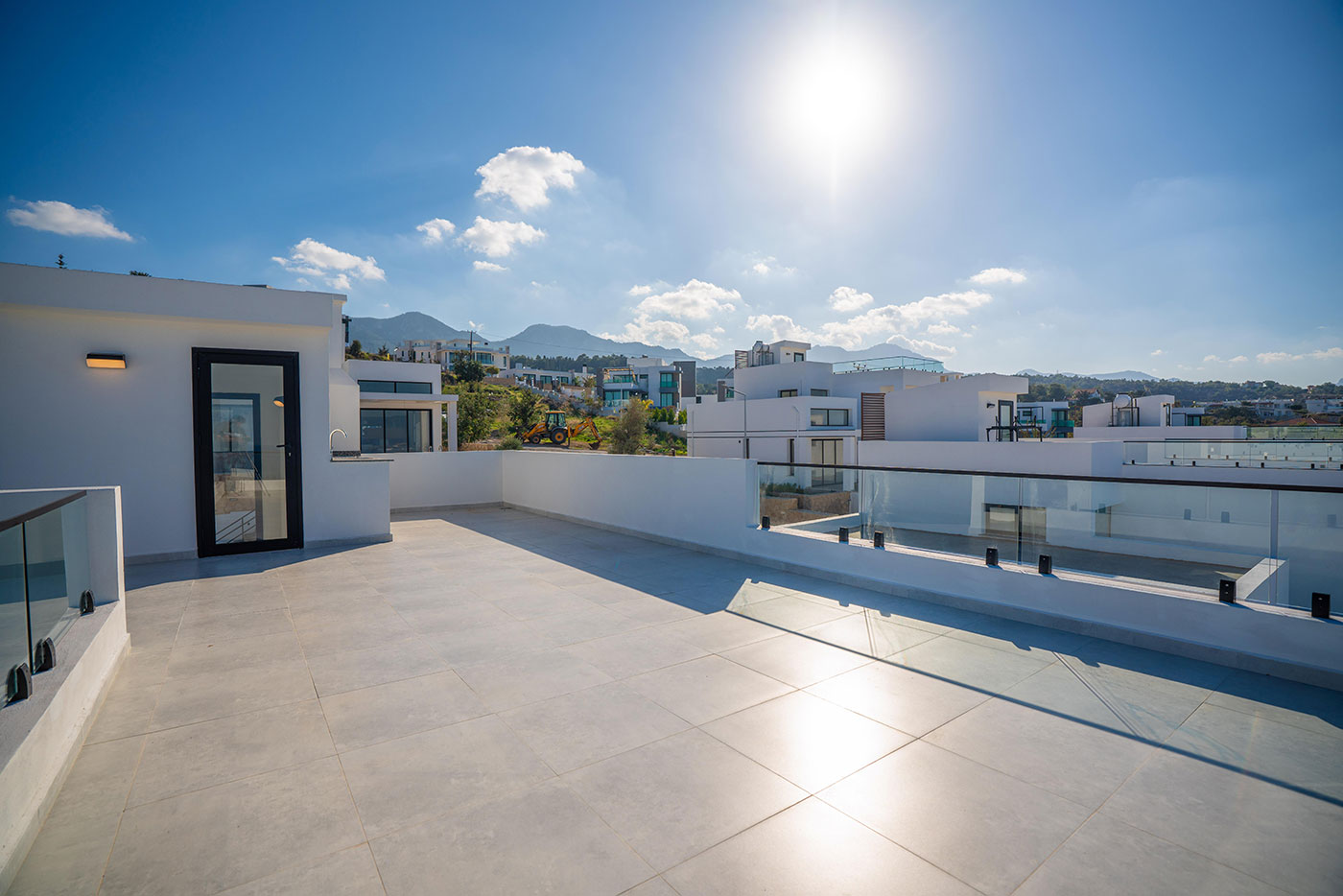 Your mornings can begin on the balcony, where you can sip coffee and soak in the breathtaking views of the surrounding landscape. For afternoon relaxation, the private pool offers a serene space to swim and sunbathe. As the day comes to a close, head up to the roof terrace to freshen up with an outdoor shower, all while taking in the spectacular vistas of the region.