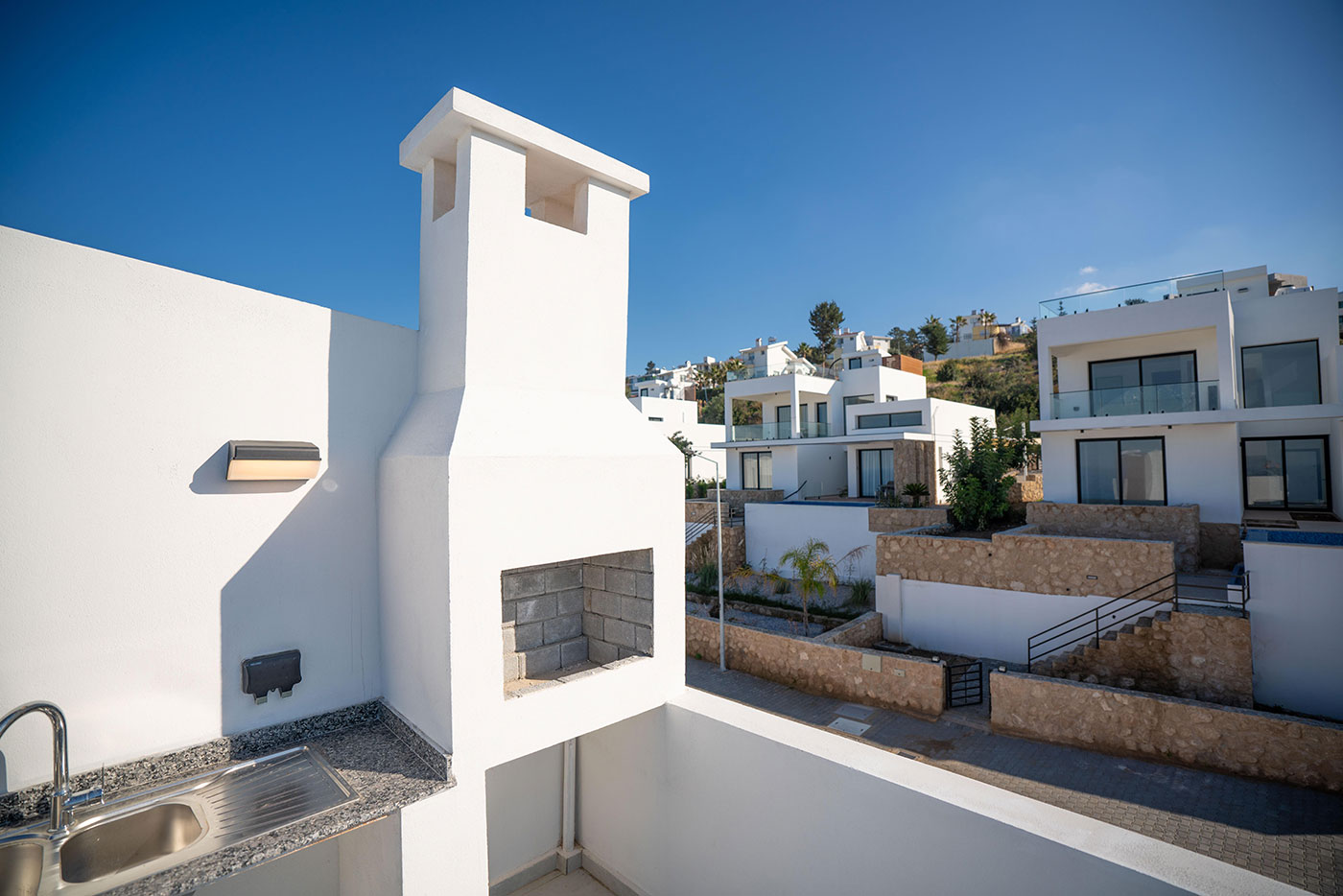 When it’s time to dine, the roof terrace features an outdoor kitchen and barbecue, making it the perfect spot for a sunset dinner under the stars. The beauty and tranquility of the home provide an ideal backdrop for creating unforgettable memories.