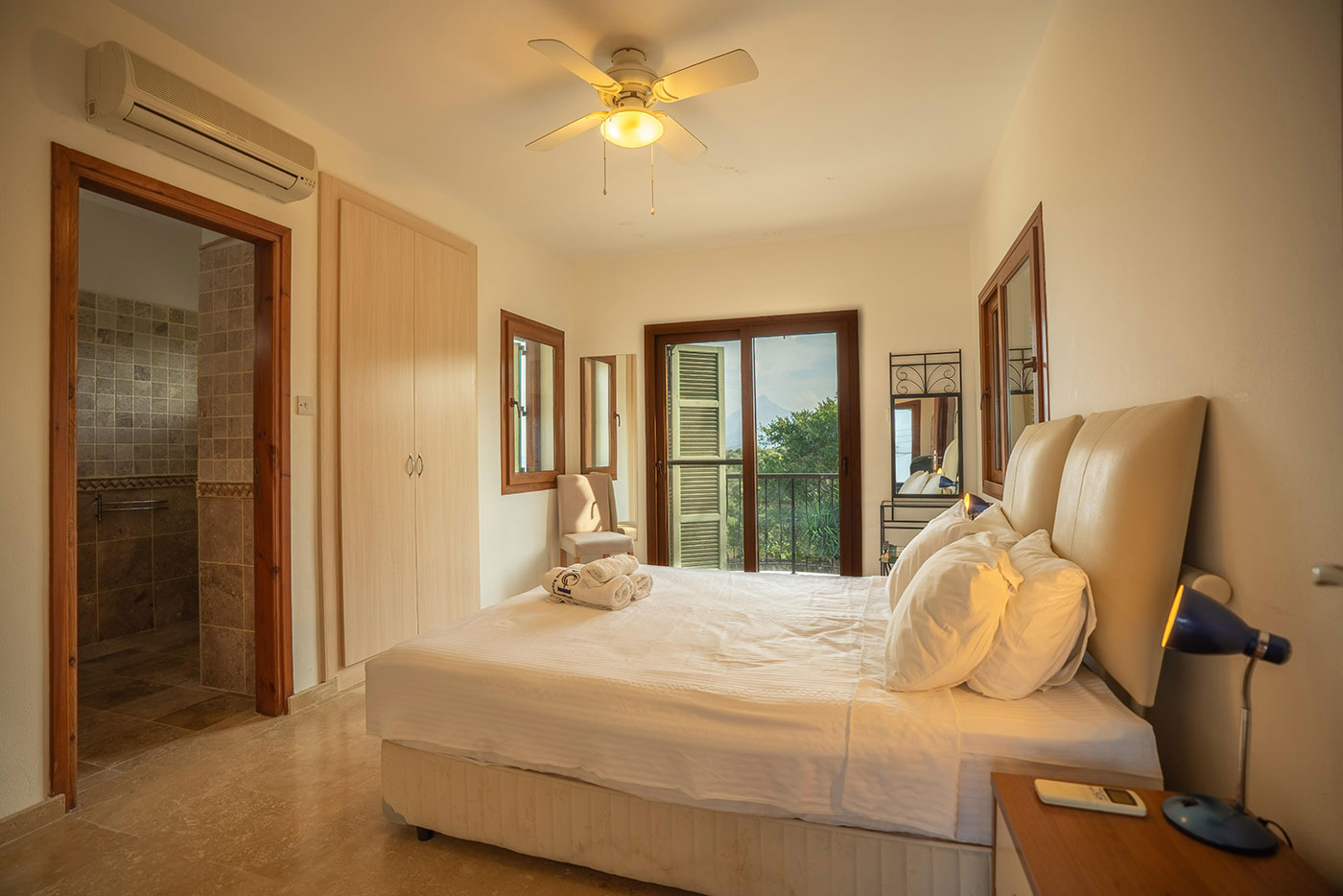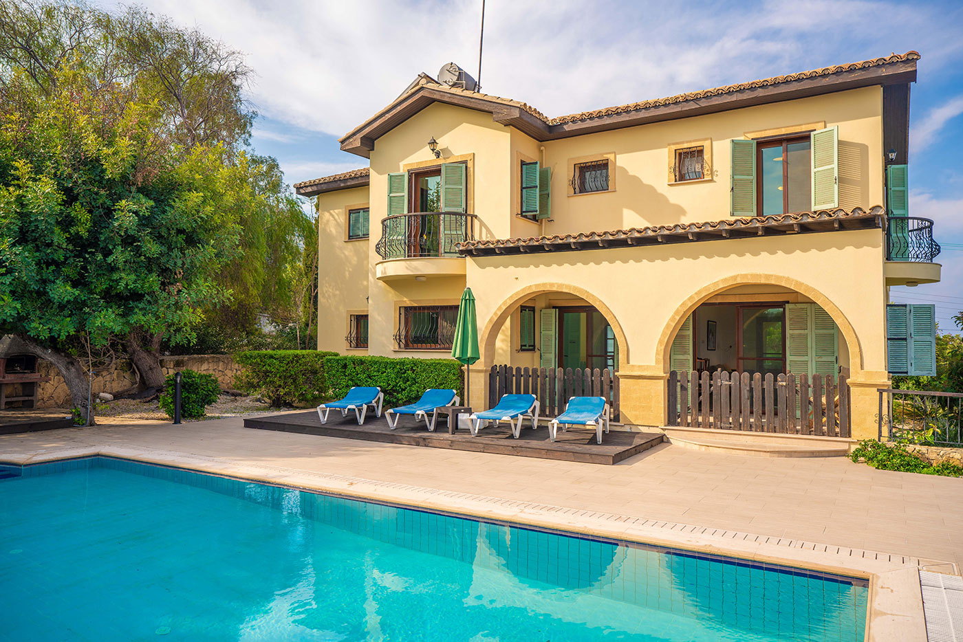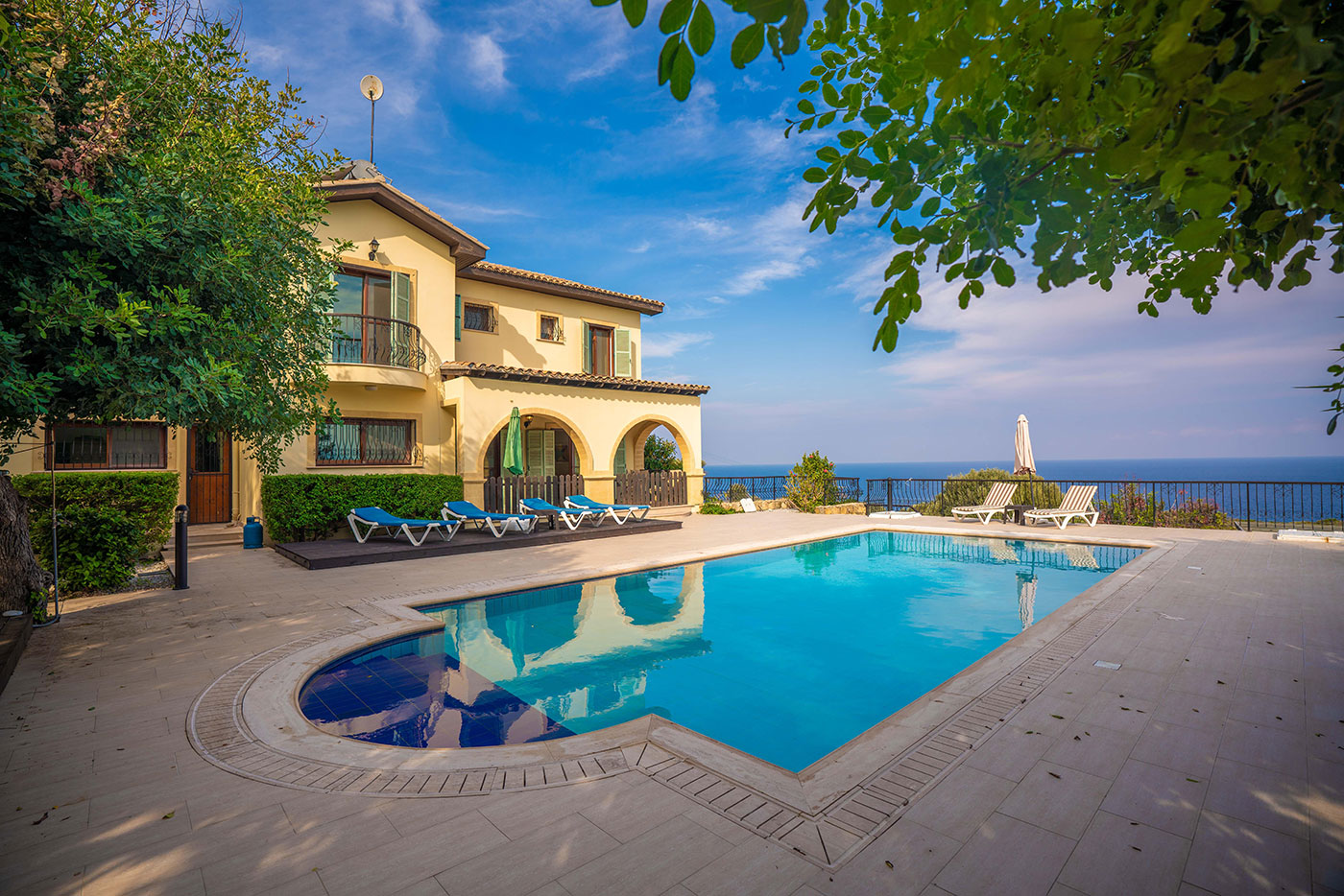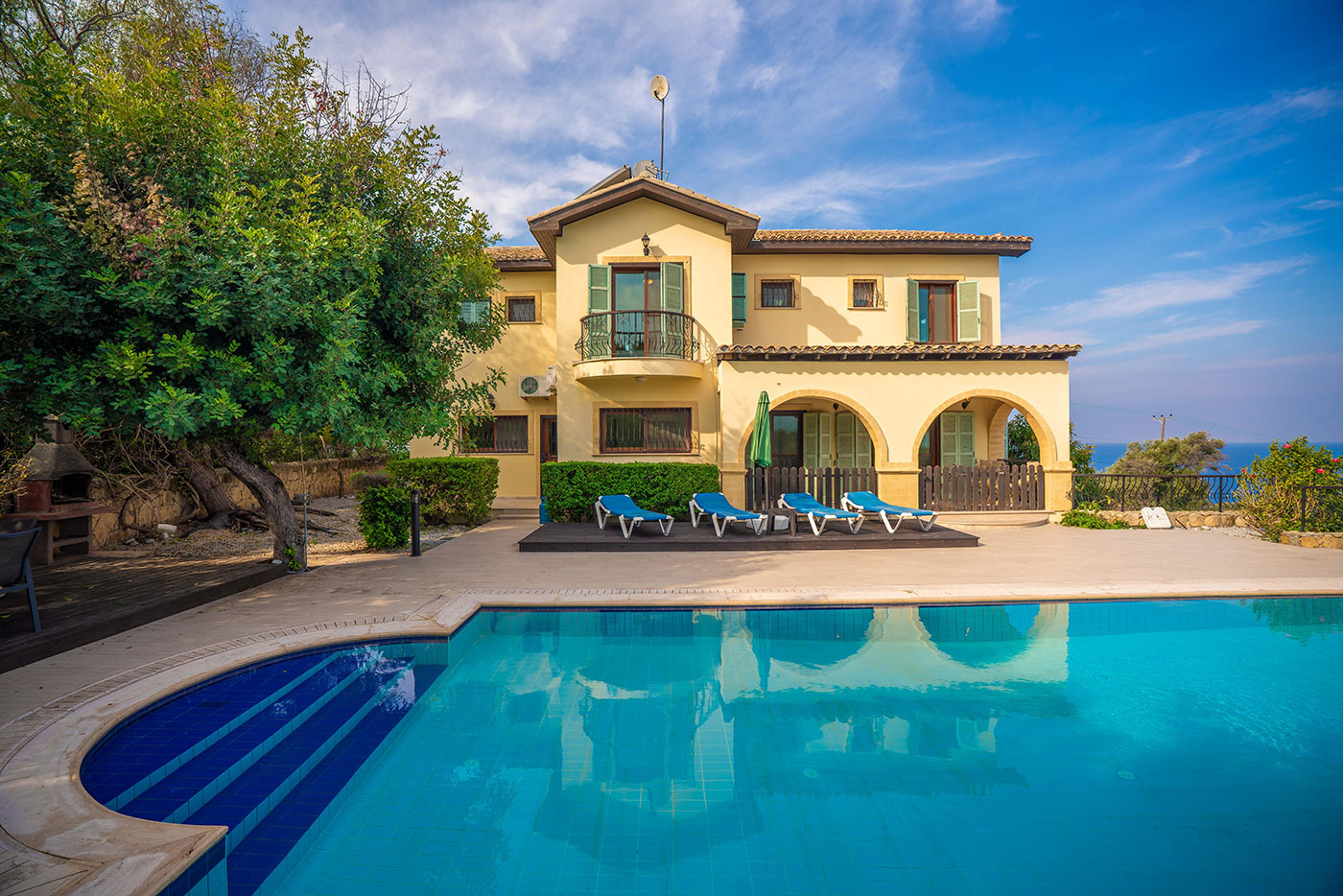 Located in a quiet location in the villa of Kayalar, about 18 miles west of Kyrenia, North Cyprus, this villa offers spectacular sea and mountain views, 4 King size bedrooms with 3 en-suites, as well as a family bathroom and balconies and outdoor living space. The villa offers modern facilities including air-conditioning, dvd and internet access.