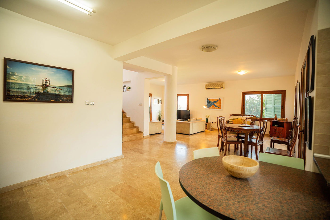 The villa is situated within about 5 minutes walk to the beach from the cliffs.